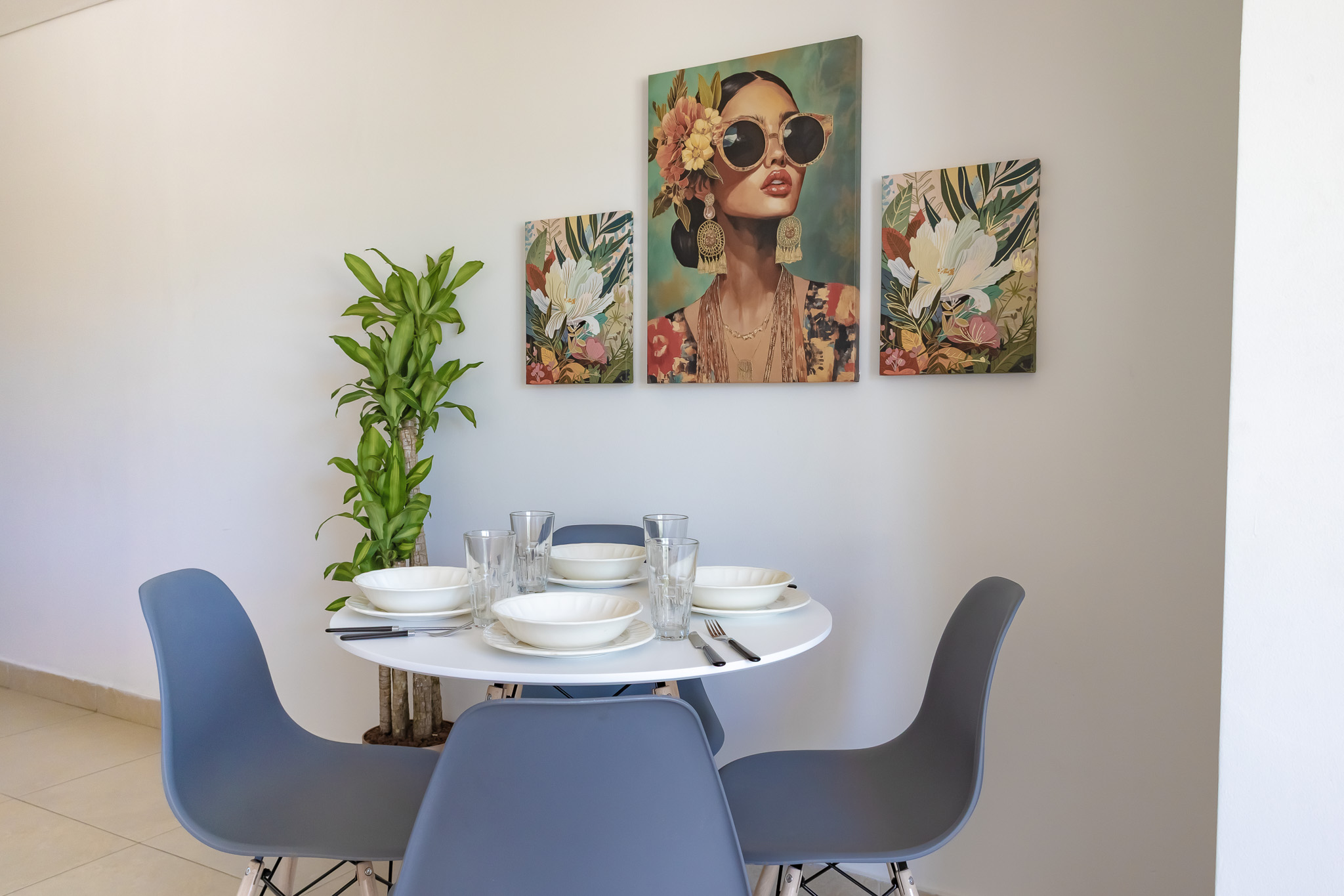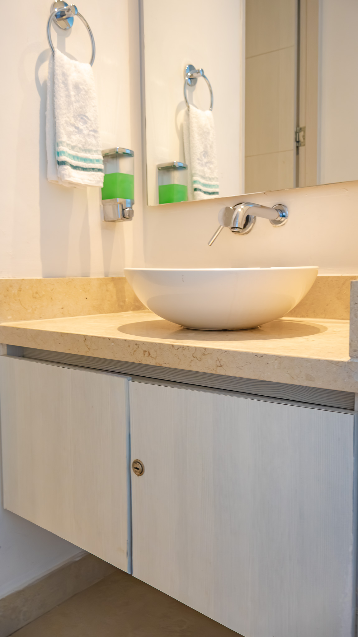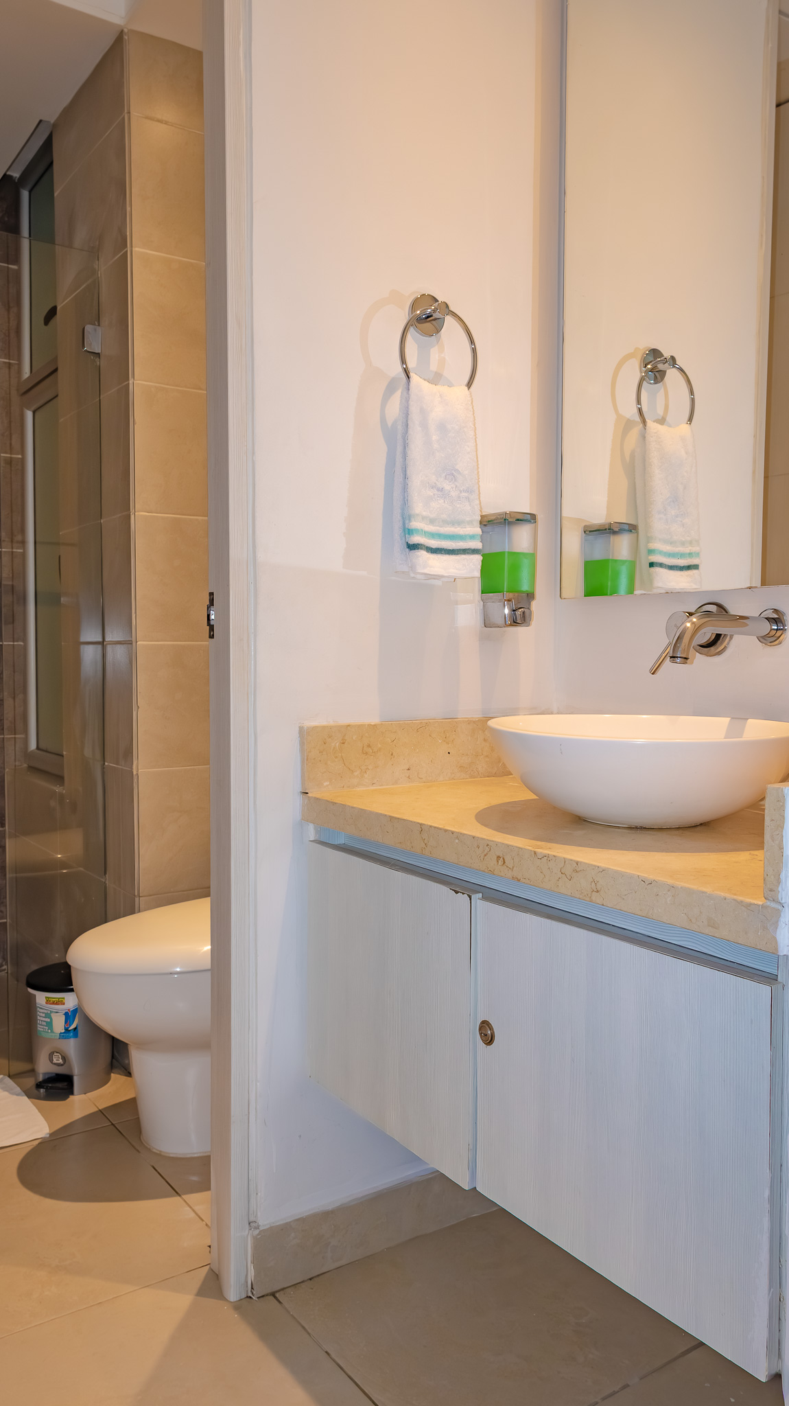 El apartamento cuenta con 2 baños en total, perfectos para satisfacer las necesidades de tu familia y huéspedes. Además, podrás disfrutar de un delicioso desayuno o de una cena romántica en el balcón, mientras disfrutas de la agradable brisa y las vistas panorámicas de la ciudad.