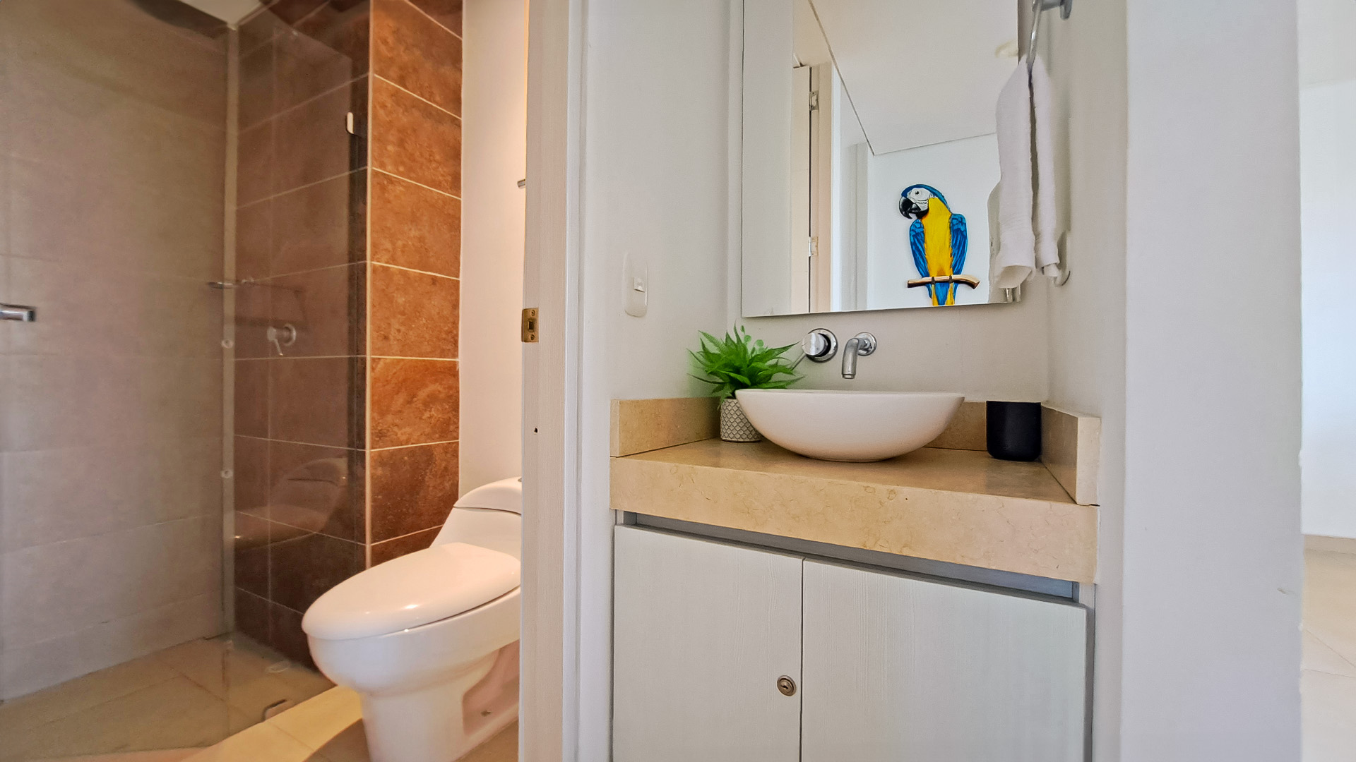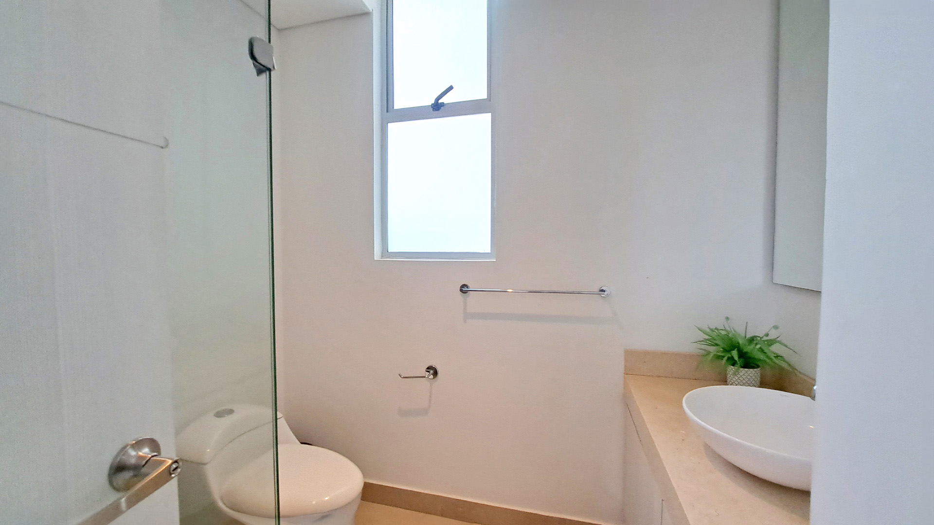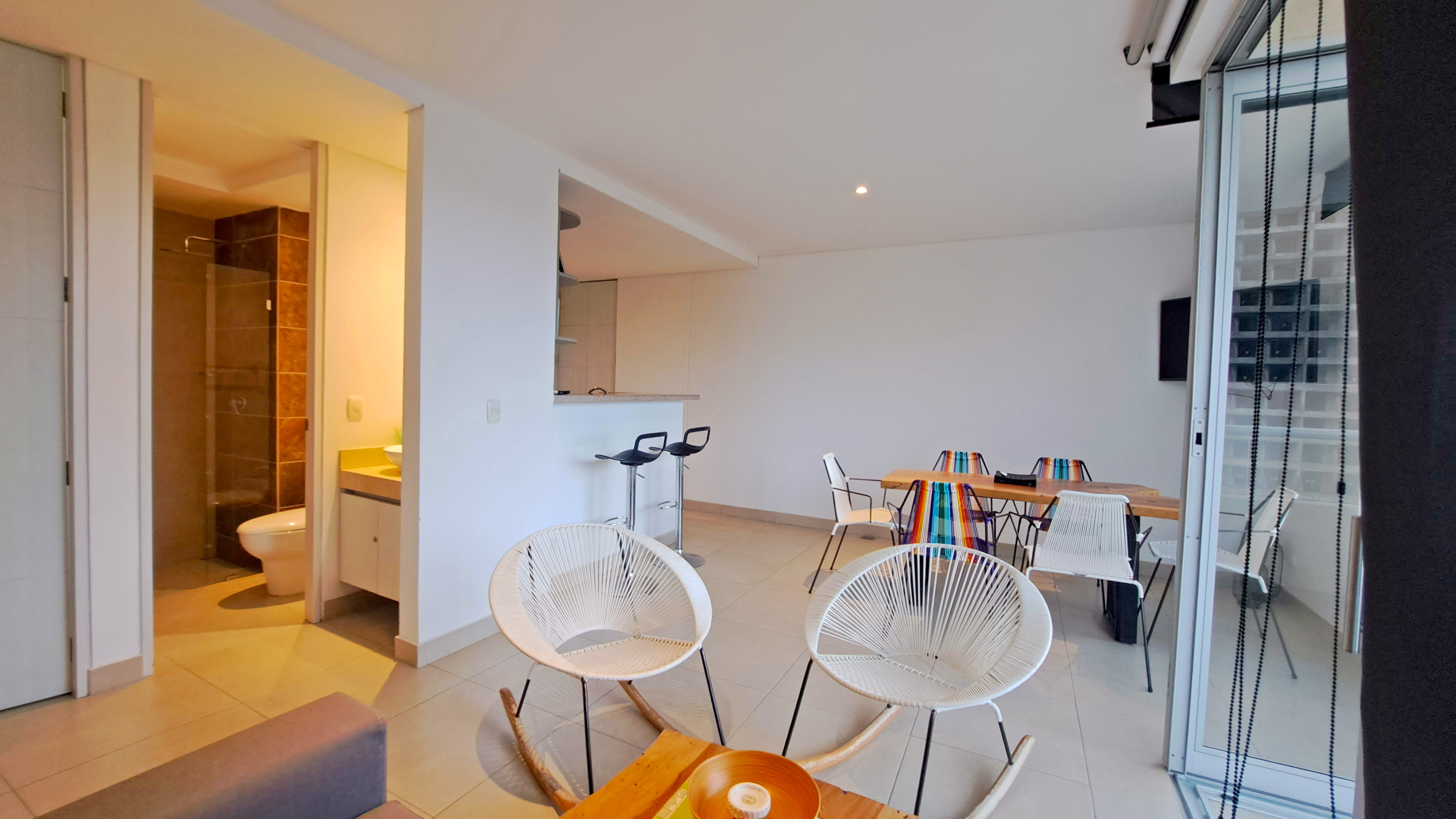 El apartamento cuenta con 2 baños en total, perfectos para satisfacer las necesidades de tu familia y huéspedes. Además, podrás disfrutar de un delicioso desayuno o de una cena romántica en el balcón, mientras disfrutas de la agradable brisa y las vistas panorámicas de la ciudad.