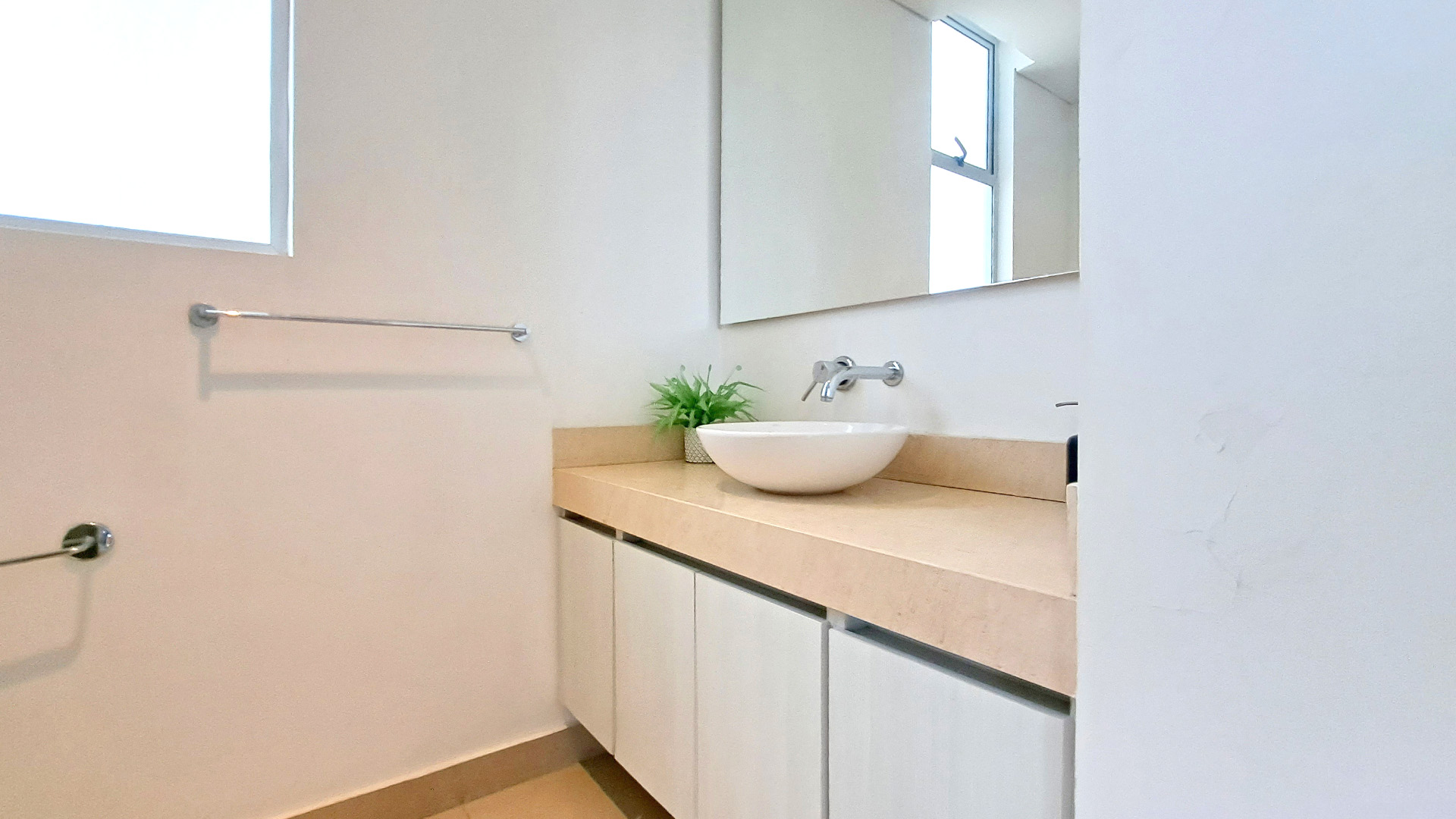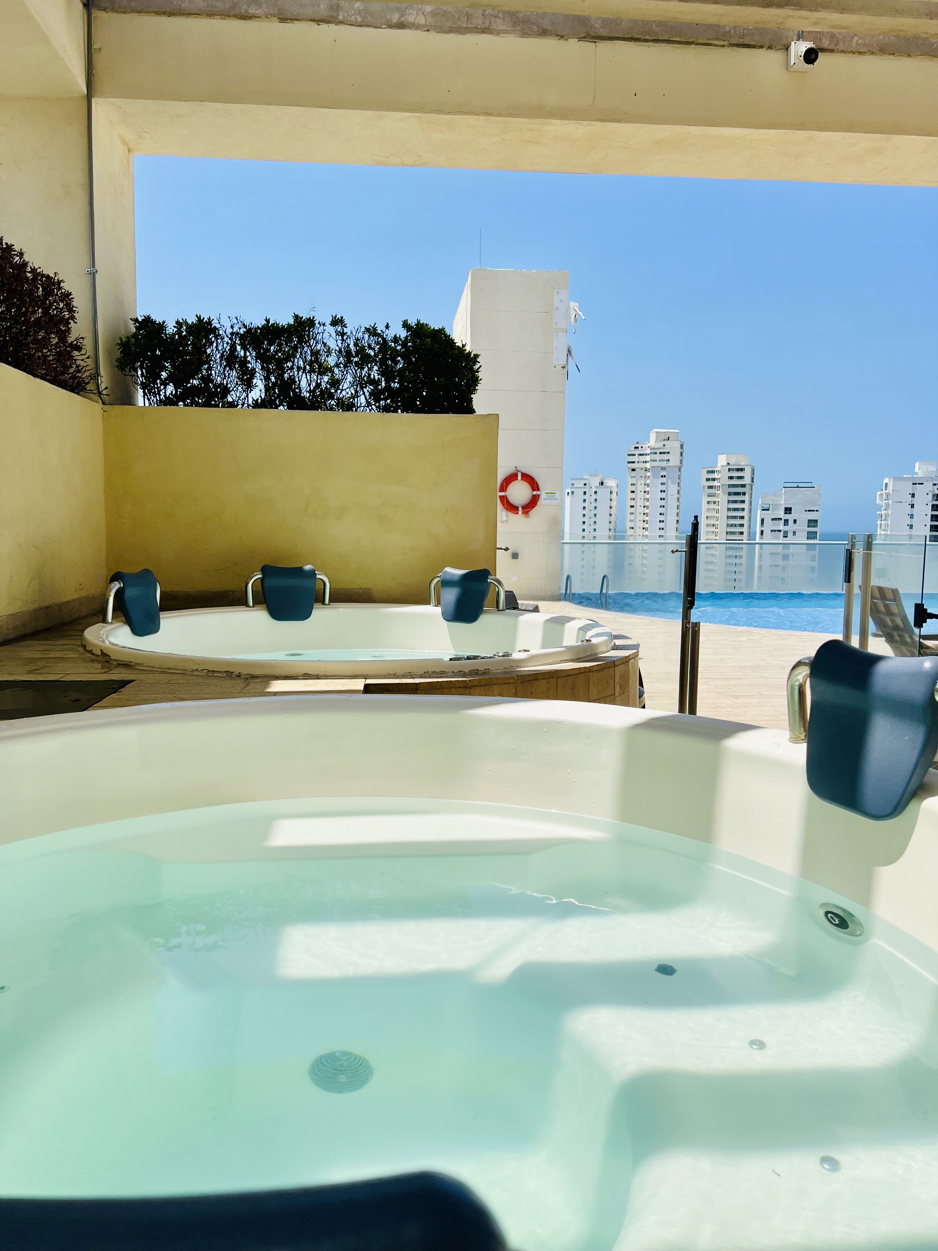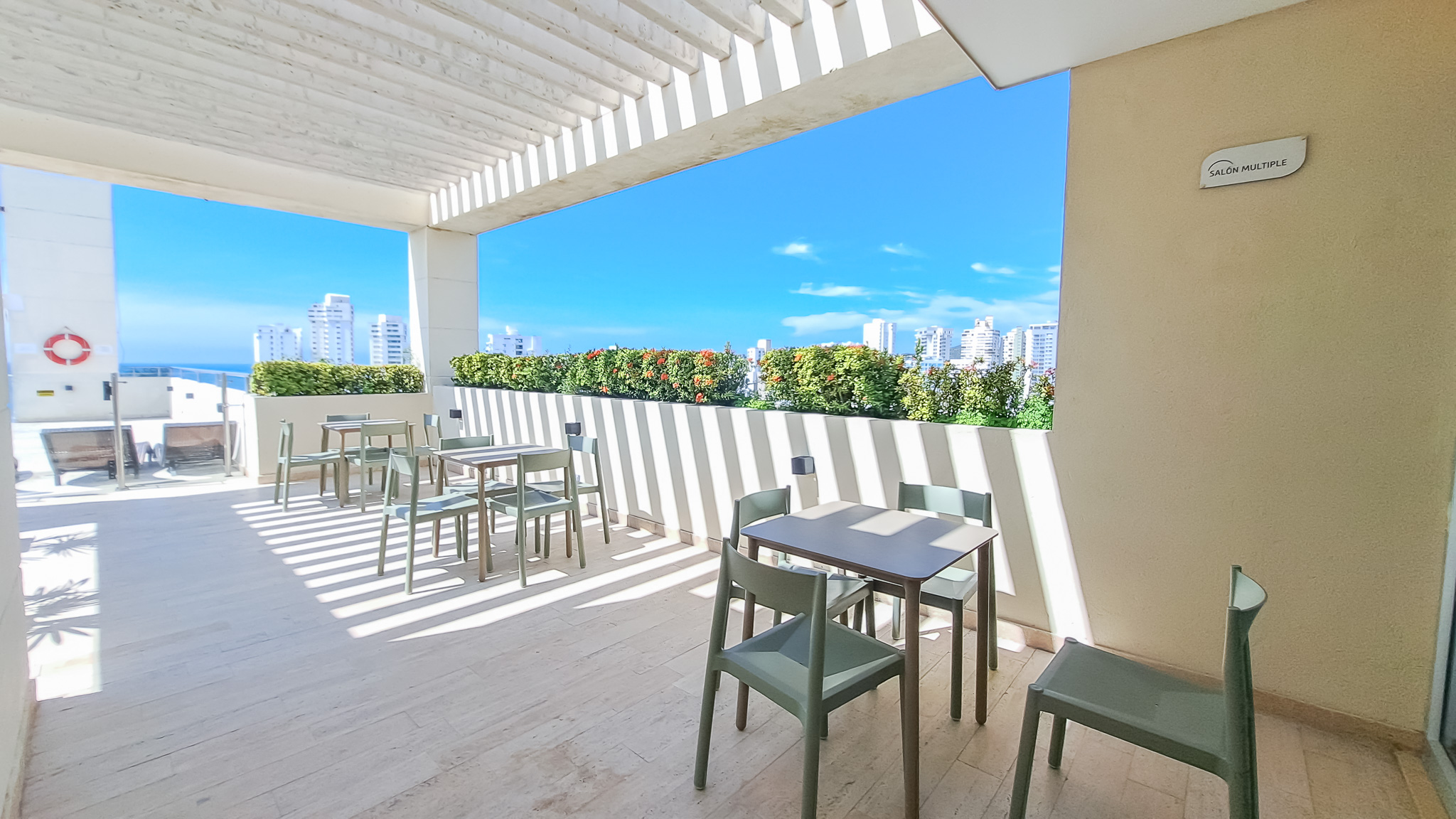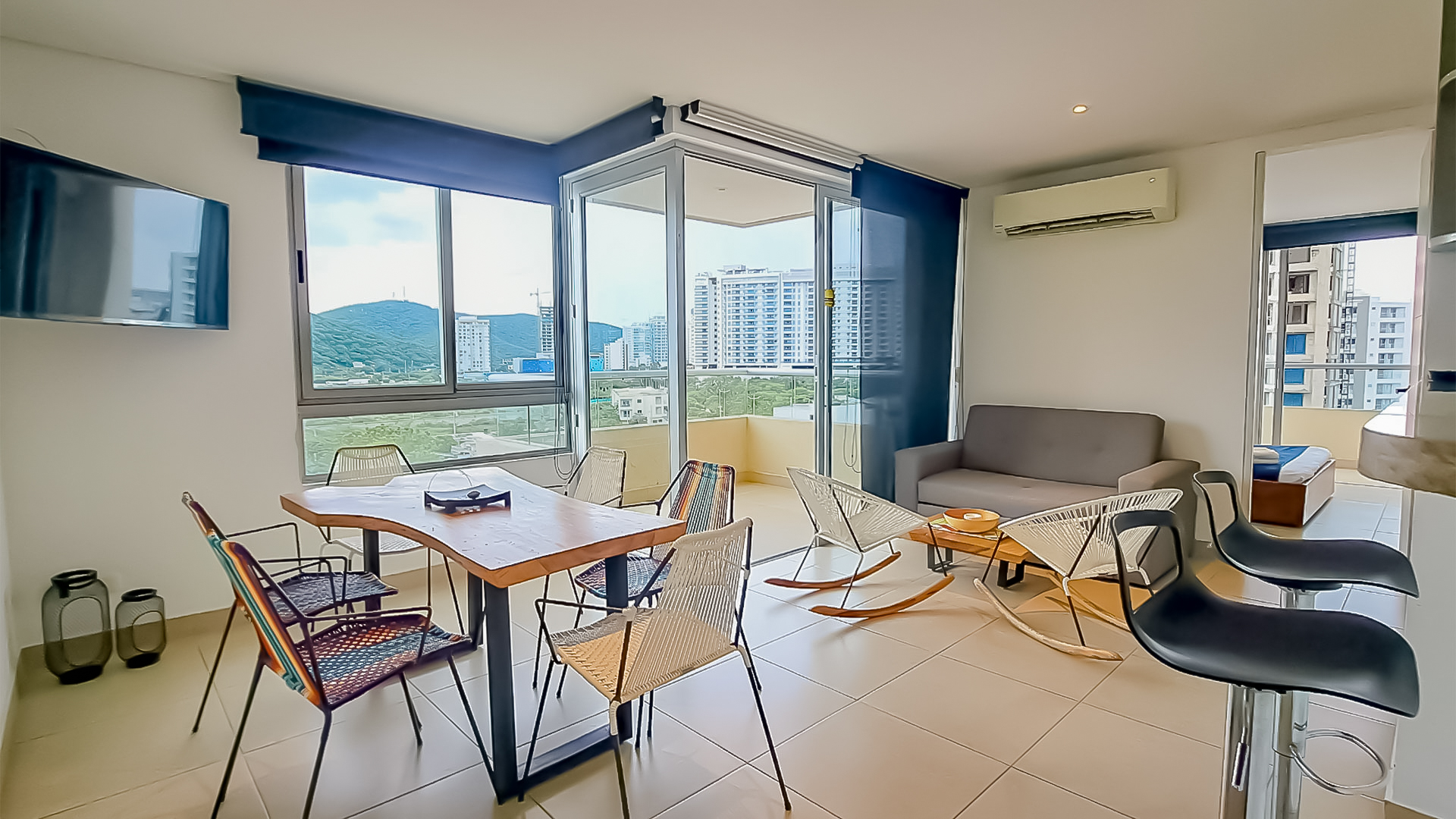El apartamento cuenta con 2 baños en total, perfectos para satisfacer las necesidades de tu familia y huéspedes. Además, podrás disfrutar de un delicioso desayuno o de una cena romántica en el balcón, mientras disfrutas de la agradable brisa y las vistas panorámicas de la ciudad.